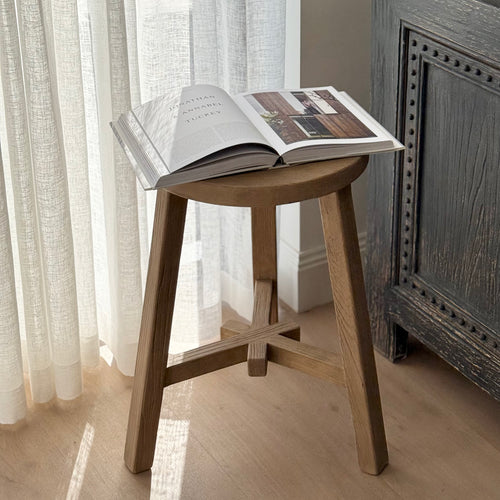 Antique Oversize Stool _ Star Base _ Aged Elm