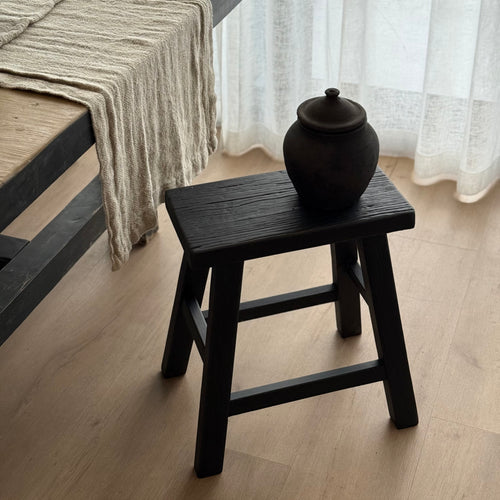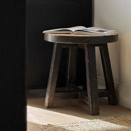 Heritage Worker Stool _ Rectangle _ Textured Black