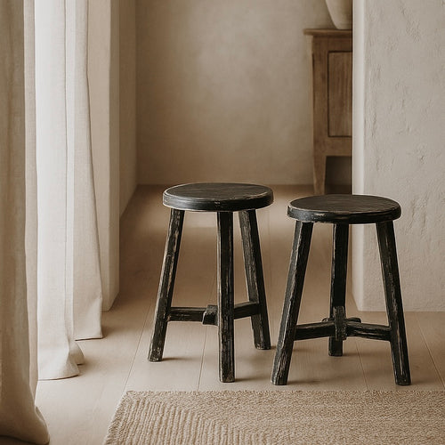 Heritage Worker Stool _ Star Base _ Distressed Black