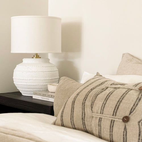 Mediterranean Lamp by Impreshens _ Australian Made _ Rustic White + White Linen Drum Shade