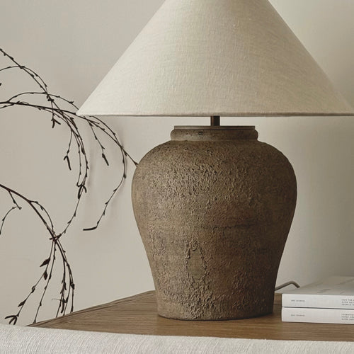 Zarah Lamp by Impreshens _ Greige Base + Ivory Linen Empire Shade