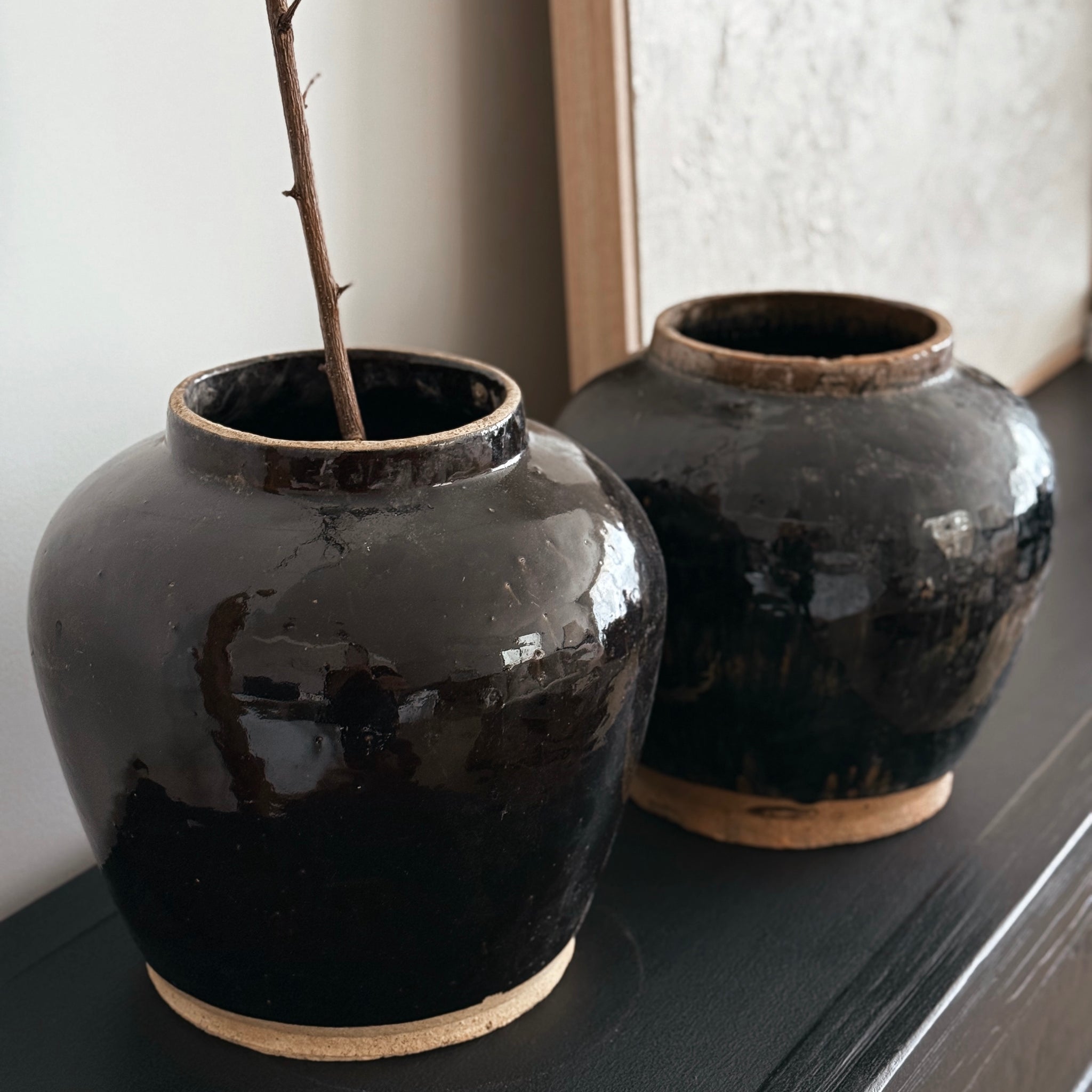 Discover the charm of our antique pottery, a vessel steeped in character and rustic warmth. Handcrafted decades ago, its rich, earthy glaze carries the gentle marks of time, subtle variations in tone, imperfections and a naturally weathered finish that speaks to its past.