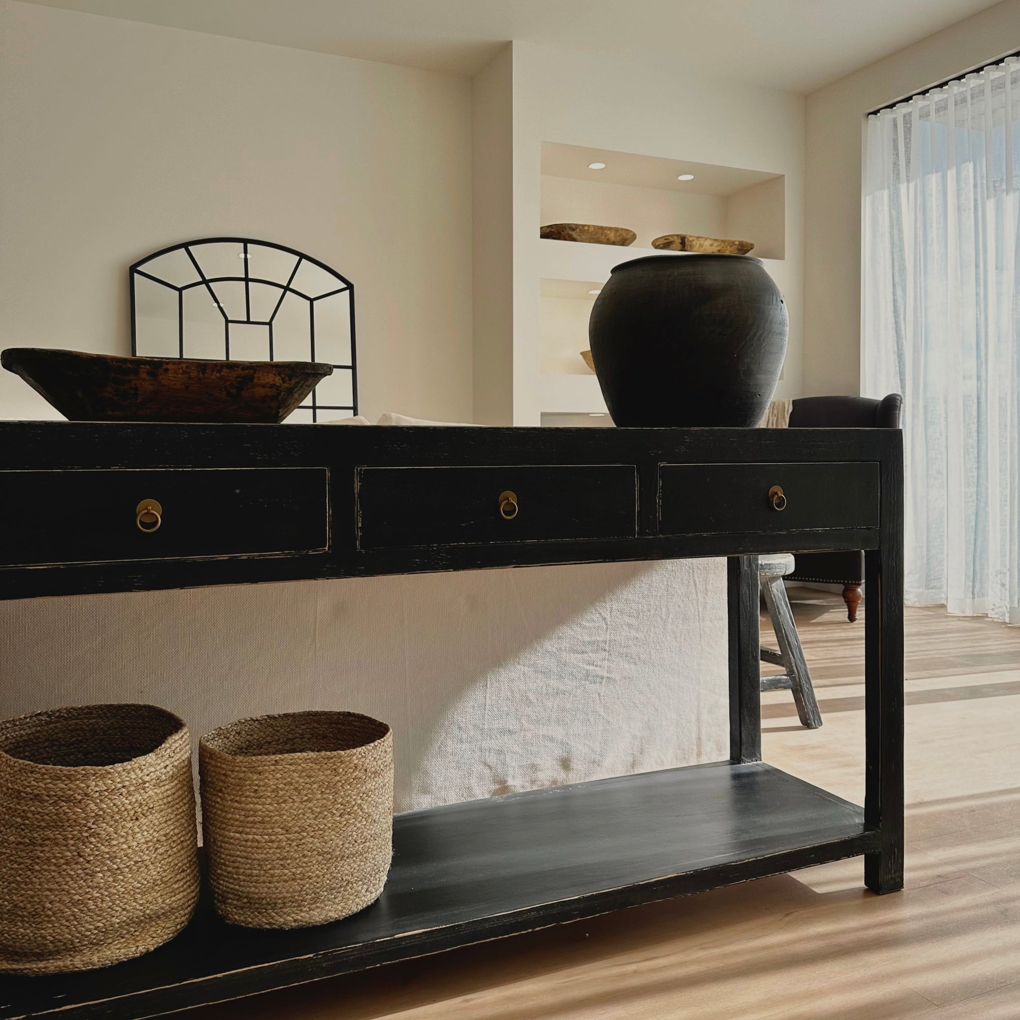Made from reclaimed, eco-friendly elm, our handmade consoles strike the perfect balance between modern design and rustic charm. Whether styled in an entryway, hallway, bedroom or dining room, this piece adds warmth, texture and soul to any space.