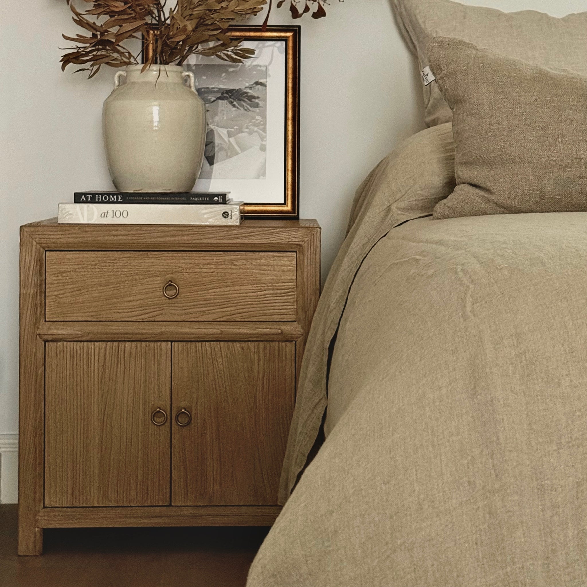 Bring character and timeless texture to your space with our Reclaimed Elm Bedside Table. Crafted from beautifully aged elm wood, each piece showcases rich grain patterns, natural imperfections and weathered texture.