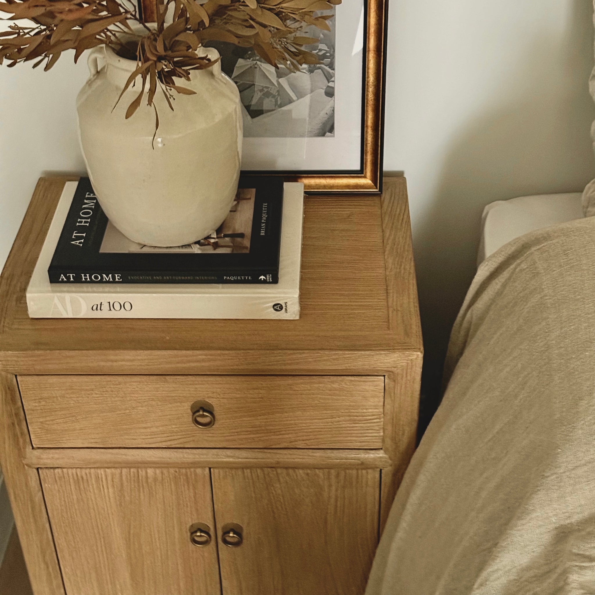 Perfect for your bedside or living area, this piece pairs the authenticity of old-world materials with a clean, simple silhouette designed to let the wood’s natural beauty shine.