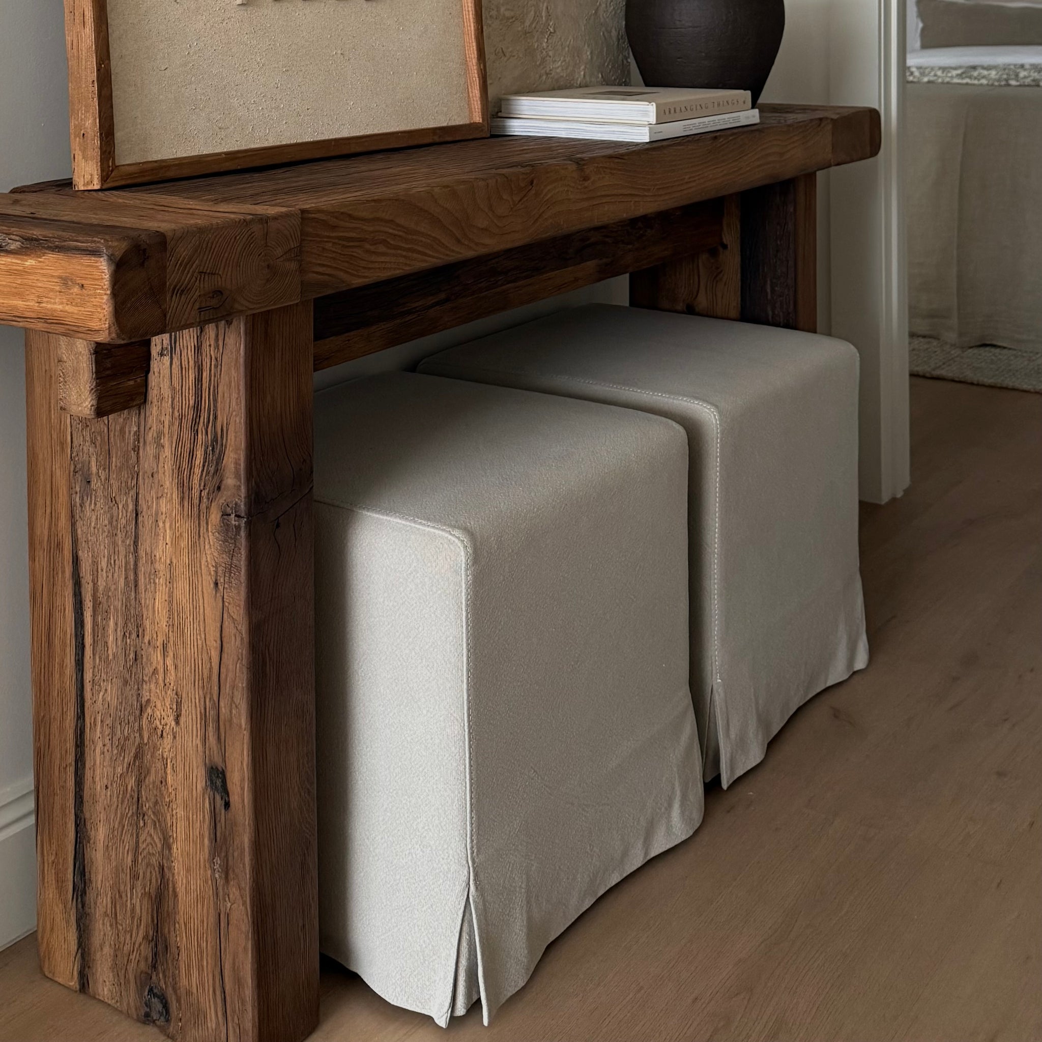 This versatile piece works beautifully as extra seating, a footrest or styled in pairs beneath a console. Its natural grey/beige colour blends effortlessly with any space, making it a staple for Modern, Farmhouse, Mediterranean and Coastal inspired homes.