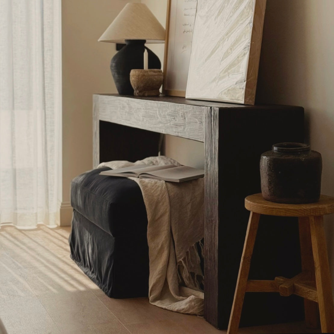 The rustic yet, contemporary design of the our hallway table, offers a stunning focal point for any living space, making it the perfect addition to both modern and traditional interiors. Its sturdy construction ensures durability, while the carefully preserved imperfections add character and authenticity.