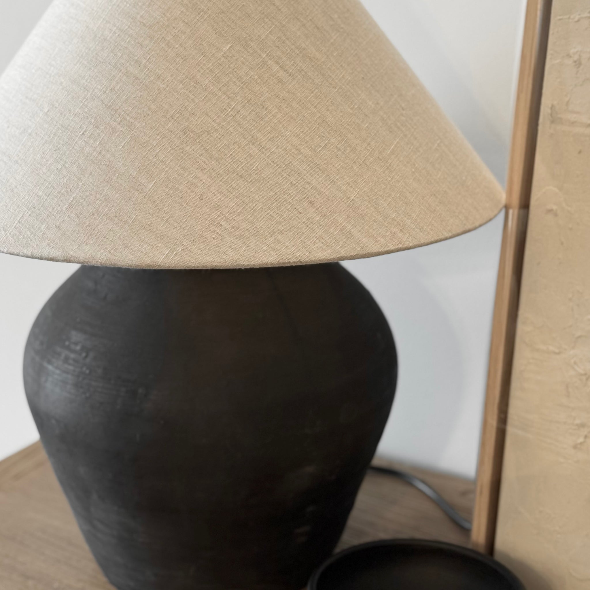 Note: due to the handmade nature of our lamp bases, size, character, shape and finish will vary. Made from an authentic antique pot, markings, chips and cracks are to be expected and should be embraced as part of the design.