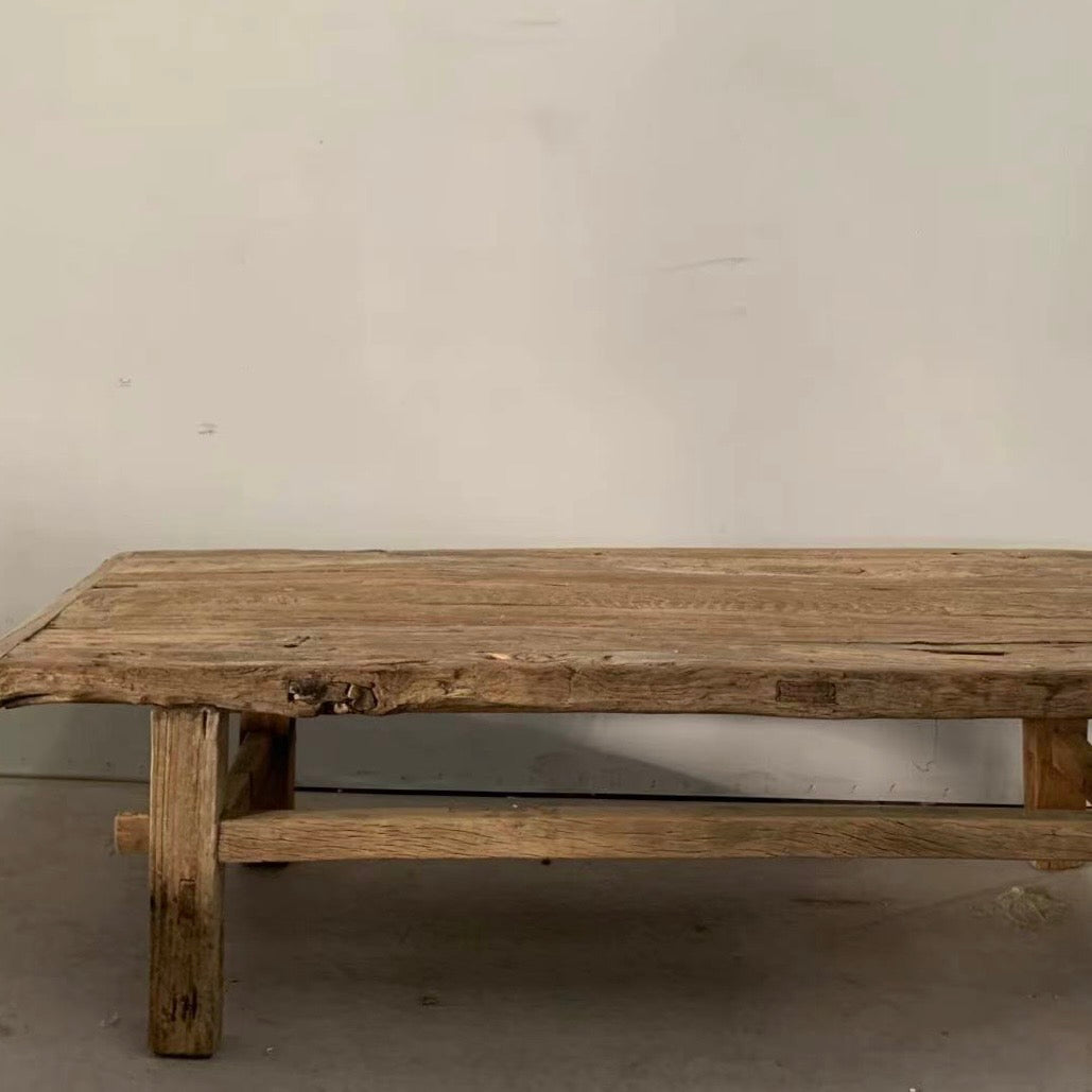 Crafted from old recycled elm wood, each Wabi Sabi Coffee Table carries the soul of time within its grain. Every piece is truly one-of-a-kind, weathered by history, shaped by hand, and celebrated for its imperfections. Its raw, organic surface and simple form bring a grounding beauty to any space, evoking the ease and calm of Mediterranean living.