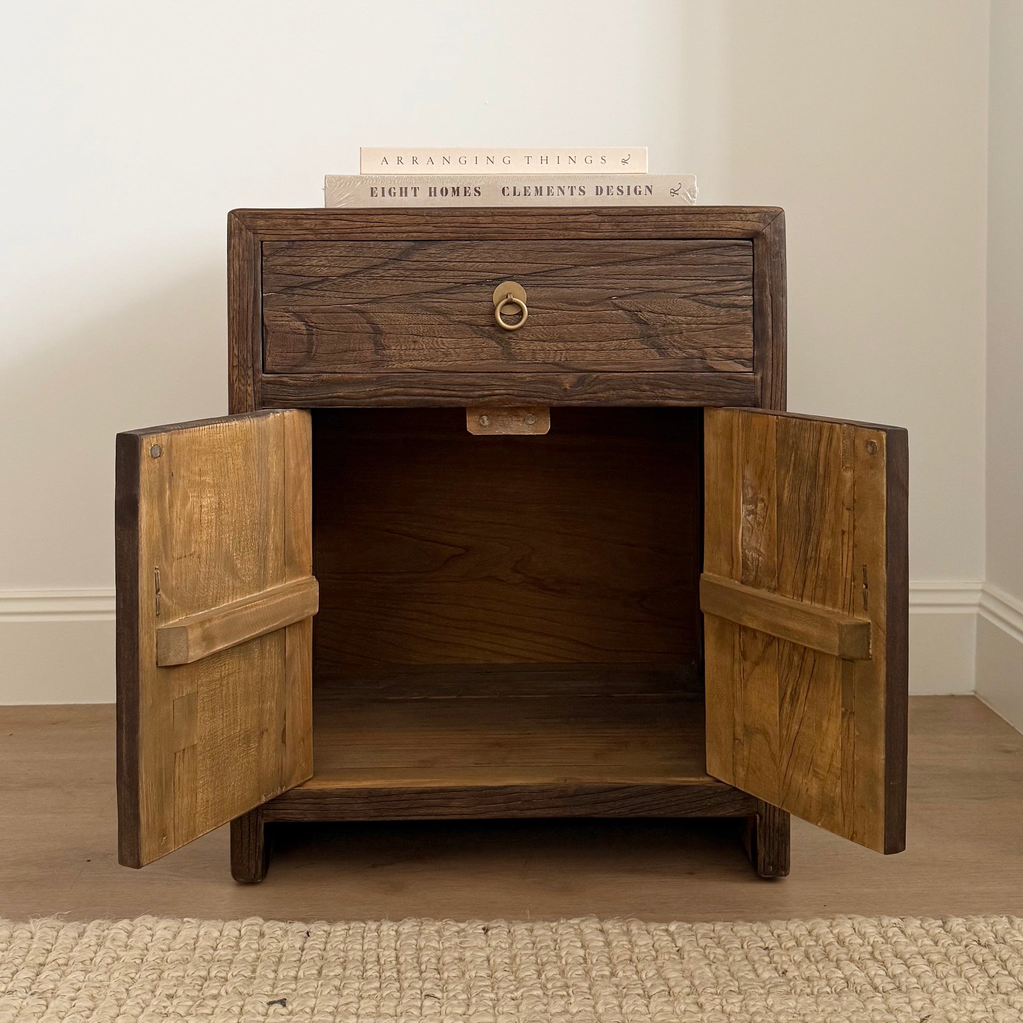 Bring character and timeless texture to your space with our Reclaimed Elm Bedside Table. Crafted from beautifully aged elm wood, each piece showcases rich grain patterns, natural imperfections and weathered texture.