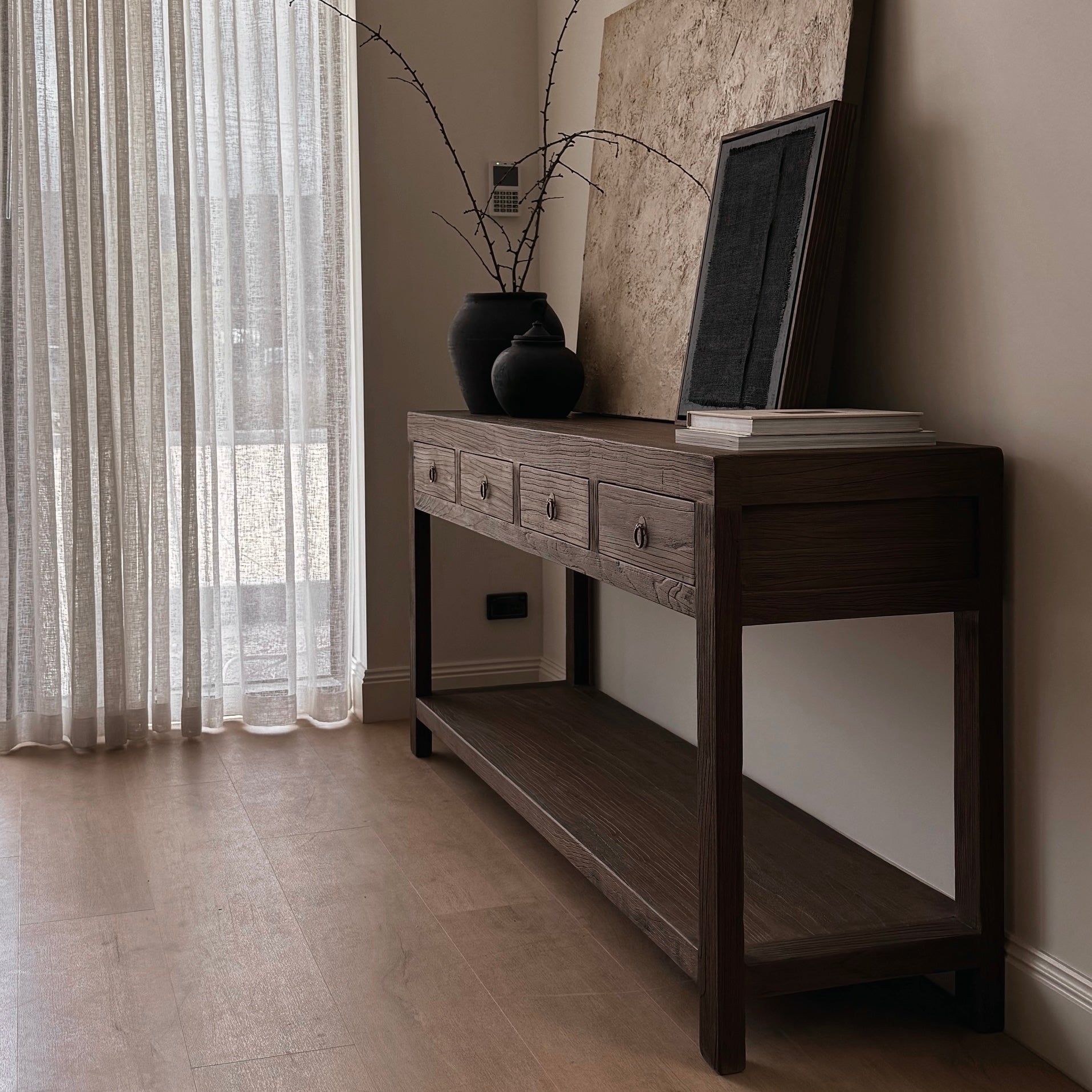 Made from Reclaimed, Eco-Friendly, Elm our Antique Console is full of texture, old world charm and each piece has its own unique grain pattern making them one-of-a-kind.