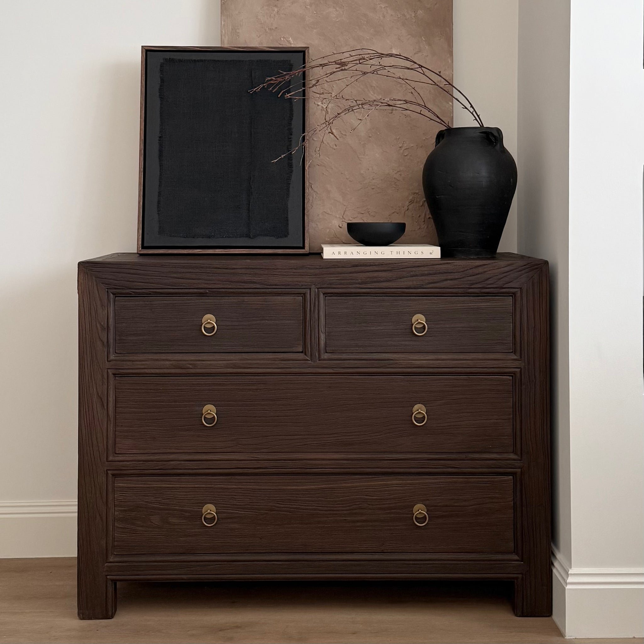Created for smaller spaces, these chests are a practical storage solution without compromising on style and available in 2 of our signature finishes. Four drawers with antique brass hardware - an absolute must-have for any Aussie Bedroom.